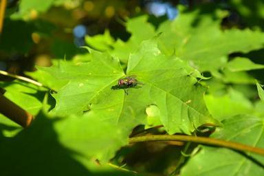 Keywords: goldfliege fly insect leaves tree maple lucilia sericata bluebottle calliphoridae lucilia leaf green maple leaf silver maple acer saccharinum acer