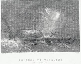| Keywords: Goleudy yr Ynyslawd, wrth Gaergybi.jpeg Abstract View of turbulent seas South Stack lighthouse and a shipwreck in a storm Size mm 211 141 exhibition history Institution National Library of Wales Technique print engraving bw object history object type PD-old-70-1923 place of creation place of discovery 1130453 Goleudy yr Ynyslawd wrth Gaergybi Uploaded with GWToolset Goleudy yr Ynyslawd wrth Gaergybi http //dams llgc org uk/behaviour/llgc-id 1130453/fedora-bdef image/reference Images uploaded as part of NLW - WMUK collaboration Welsh Landscape Collection South Stack Lighthouse 1830s Storms in art Sailing ships in art Shipwrecks in Wales |