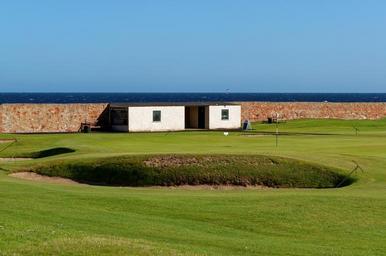 Keywords: golf course golf golf hole golf green green flag sunny blue sky bunker wall horizon course natural outdoor landscape golfers sport