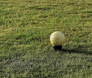 Keywords: golf tee marker yellow tee course green game grass recreation outdoor golfing fairway start leisure teeing ground