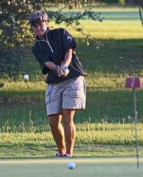Keywords: golfer golfing green putting putter club ball course grass tournament competition game sport outdoors man play recreation activity fairway shot swing hit flag hole trees nature view