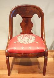 | Keywords: Gondola side chair, maker unknown, New York City, c. 1820, mahogany, cherry, mahogany veneer, silk upholstery - De Young Museum - DSC00812.JPG en Exhibit in the De Young Museum San Francisco California USA This artwork is in the public domain because the artist died more than 70 years ago Photography was permitted in the museum without restriction 2013-11-05 16 04 05 own Daderot other versions cc-zero Furniture in the De Young Museum Uploaded with UploadWizard Furniture from New York City Gondola chairs |