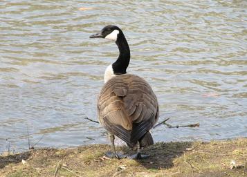 Keywords: goose canadian bird waterfowl lake outdoors nature wildlife looking standing fowl water shore wild profile portrait