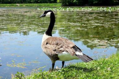 Keywords: goose canadian goose lake swim swimming feathers bird avian fowl peck