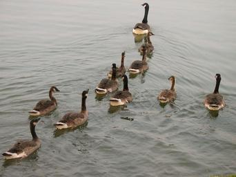 Keywords: Goose Creche.JPG A Creche of Canada Geese Branta canadensis Own 2007-07-05 Scrumshus Branta canadensis swimming families