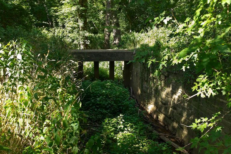 Keywords: Goose Creek lock top gate converted to waste weir.jpg en Looking where Top Gate used to be converted to a waste weir on the Goose Creek river lock on the Chesapeake and Ohio Canal at 30 64 miles just before Edwards Ferry to allow boats from Goose Creek to enter the canal This is the opening to the Potomac River Unlike most locks this is a staircase lock i e 2 or more locks together with no intervening level between them like that at Lockport NY on the Erie This means the top gate of the lower lock is the same as the bottom gate on the upper lock It is the only staircase lock on the Chesapeake and Ohio Canal NPS site http //www hscl cr nps gov/insidenps/report asp STATE PARK CHOH STRUCTURE SORT RECORDNO 218 says Goose Creek River lock was built to allow boats from the VA side of the Potomac River to access the canal The lock is a 2-lift lock combine with a total lift of 15 ™ joined by a middle set of gates Each lock is approx 90' long Built of Seneca red sandstone with Aquia freestone coping it was completed by 1838 Around 1900 it was no longer used as a lock but as a wasteweir for the canal A new concrete wasteweir of four gates was built adjacent to the upstream side of the upper lock gate This new wasteweir meant that boats could no longer travel from the river locks into the canal prism own Bonnachoven Chesapeake Ohio Canal National Historical Park Cc-zero |