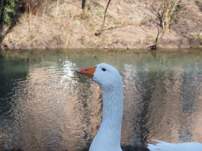 Keywords: goose head neck bill animal white livestock bird poultry domestic goose bank river riverside