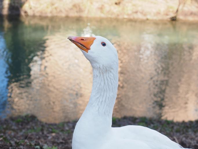 Keywords: goose important courageous head neck bill animal white livestock bird poultry domestic goose bank river riverside orange