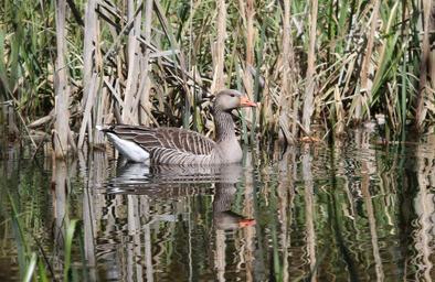 Keywords: goose water pond bird nature wildlife lake waterfowl fowl spring waterbird uk warwickshire reflection reeds reedbed