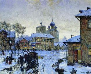 | Keywords: Gorbatov Zimniy vecer.jpg This is picture of russian painter Konstantin Gorbatov «Зимний вече » winter evening Это ка тина усского художника Константина Го батова «Зимний вече » http //www artsait ru/foto php art g/gorbatov/img/10 n Го батов 20Константин 20Иванович 20«Зимний 20вече » 1910 Creator Konstantin Gorbatov PD-RusEmpire Konstantin Gorbatov Winter in cityscape paintings |