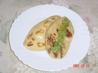 Keywords: Gordita1.JPG a mexican gordita with salsa Own october 26 DanielaB GFDL-self-no-disclaimers relicense Gorditas