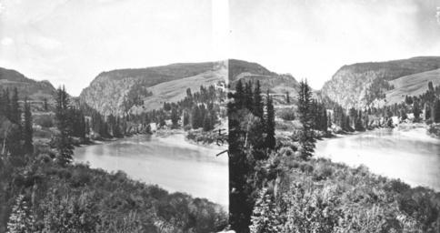 | Keywords: stereoscopic stereophotography stereophotographs historical usgs history geology mapping black and white blackandwhite bnw stereograph blackandwhite monochrome outdoor black and white Gore Canyon. View near its mouth, looking down. The Colorado River here makes its first entry of the canyon, flowing quietly and smoothly through the upturned beds of sandstone that lie up against the more massive rocks of the canyon proper. Grand County, Colorado. 1874. (Stereoscopic view) Gore Canyon. View near its mouth, looking down. The Colorado River here makes its first entry of the canyon, flowing quietly and smoothly through the upturned beds of sandstone that lie up against the more massive rocks of the canyon proper. Grand County, Colorado. 1874. (Stereoscopic view) |