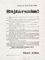 | Keywords: Görgei kiáltvány 1848 04-29.jpg Görgei Artúr kiáltványa a hadsereghez Komárom 1849 április 29 scanned by uploader 1849-04-29 Artúr Görgei PD-old Documents of the Hungarian revolution and war of independence in 1848 “49 1849 documents Artúr Görgei |
