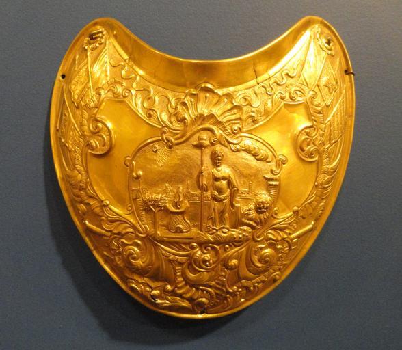 | Keywords: Gorget for officer of Dutch States Army, Netherlands, early 18th century - Higgins Armory Museum - DSC05698.JPG Exhibit in the Higgins Armory Museum 100 Barber Avenue Worcester Massachusetts USA The museum permitted photography without any restriction both in writing and when I asked verbally I took this photograph 2011-09-24 12 16 49 Daderot Public domain Pieces of armor in the Higgins Armory Museum 1700s in military history Military history of the Netherlands Netherlands Maiden Gorgets |