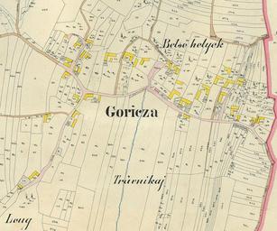 | Keywords: Gorica 1859 večji obseg in original.jpg Zemljevid Gorice 1859 Slovenija <br>Tako je izgledala Gorica pred 150 leti leto 2009 davnega leta 1859 bila je večinoma obdana z gozdom Slika je skenirana in ni cela - je samo izrez kjer so hiše Poslana mi je iz Geodetskega zavoda RS Legenda Njive Travniki Pašniki Listnate krošnje dreves pa nakazujejo redko poraslost z drevjem listavcev Stavba rdeče barve je bila edina v vasi zidana Ostale so bile lesene oddebeljena črta fasade pa naznačuje vhodno oz glavno stran poslopja Za oznako gozdov so povzeli staro srednjeveško klasifikacijo gozda na nizki srednji in visoki gozd zato so oznake gozda tudi MW Mittelwald ali HW Hochwald Ker legende ni si boste morali označen zemljevid razlagati po svoje Na moje vprašanje o legendi tega zemljevida pa sem dobil v Arhivu republike Slovenije naslednji odgovor Če pravilno razumem vaša vprašanja vas zanimajo legende na gradivu ki ga v Arhivu RS sploh nimamo zato bi bila razlaga zgolj ugibanje in morda celo strokovno sporno ravnanje V iskanju po internetu pa sem naletel na http //www posselt-landkarten de/zeichenerklaerung htm naslednjo stran ki je pa menda le podobna Fotografija skenirana in naložena Franc Lanjšček Zemljevid Gorice iz leta 1859 z hišami in njihovimi lastniki hišnimi številkami in parcelami - glej priloženi zemljevid wikitable Hišna številka Parcelna številka Lastnik hiše in parcele iz leta 1859 - 1 162 Bozsek Tresi - 2 159 Mörets Istvan - 3 150 Luthar Ferenez - 4 141 Luthar Ferenez - 5 145 Gutjmann Ignatz - 6 127 Mörets Josef - 7 122 Szeplits Mihael - 8 118 Verem Mathias - 9 113 Zseblek Miklos - 10 106 Kihar Janos - 11 101 Siftar Mihael - 12 93 Möretz Janosnö - 13 85 Katuna Janos - 14 80 Szecko Ivan - 15 73 Horvath Ivan - 16 38 Banfy Mihalynö - 17 39 Banfy Janos - 18 65 Slavits Mihalynö - 19 48 Gortsan Matyas - 20 41 Bürgemeister Leopold - 21 43 Domainko Lorencz - 22 31 Czelak Matyas - 23 15 Czelecz Janos - 24 26 Czelecz Janos - 25 5 Franko Matyas - 26 18 Mörecz Josef - 27 432 Kironos Istvan - 28 22 Občina Gorica - 29 35 Klobasa Lorentz - 30 97 Dietrich Leonard - 31 108 Vache Josef - 32 128 Verem Mathias - 33 50 Peschina Josef Uporaba tal na Gorici leta 1859 wikitable Vrsta Joch Klafter - Njive 358 136 - Travniki 123 804 - Vrtovi - 1263 - Sadovnjaki 4 681 - Pašniki 6 1184 - Visoki gozd - listavci 11 397 - Nizki gozd 15 1535 - Neuporabna tla 4 1033 - Reke in potoki 1 880 - Poti in krajevni prostor 8 147 - Zgradbe dvorišča in gradbišča 3 734 - Celotna površina 628 773 - 1 Joch 1600 kvadratnih klafter 5754 m² 0 575 ha 1 kvadratna klaftra 3 60 m² 1 a Ar 100 m² 10 m X 10 m 1 ha Hektar 100 a 10 000 m² 100 m X 100 m Zapisano je da je Gorica dobila ime po »goricah« - vinogradih Za ta čas to ne drži saj kot je razvidno iz »Uporabe tal« teh sploh ni PD-old Gorica Puconci 19th-century maps of Slovenia |