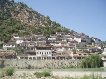 Keywords: Gorica, Berat.JPG Mangalem old part of Berat Albania own taken by myself 2006-08 User Chlämens Berat Ottoman architecture in Albania