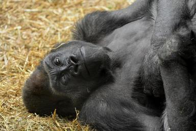 Keywords: gorilla reclining resting primate ape wild mammal nature powerful fur huge wildlife beast black looking