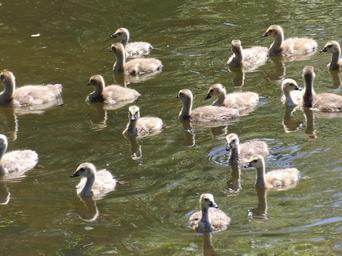 Keywords: goslings geese pond lake swimming young birds wildlife
