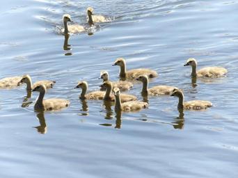 Keywords: goslings geese pond lake swimming young birds wildlife
