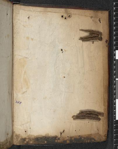 | Keywords: Gospel Lectionary (Gregory-Aland l 1496 =-l 461-=- l 1206-) - Lower cover, inside. (Add MS 37008).jpg Style Panel design Fleur de lis Byzantine; Caption Lower cover inside ; Colour Red; Edge Unspecified exhibition history Decorative Technique Tooled in blind; Cover Material Goatskin includes morocco turkey etc Binding Stamped red leather binding 15th cent with remains of silver bosses and clasps and pins which protrude from the boards and remains of leather clasp attachment Origin Eastern Mediterranean Berat created at the Monastery of St Marina in 1413 object history Text 1413; Unspecified; Unspecified object type Cc-zero place of creation Binding Eastern Mediterranean place of discovery Unspecified British Library image http //www bl uk/catalogues/bookbindings/LargeImage aspx RecordId 020-000019578 ImageId ImageId 57802 Copyright BL Gospel Lectionary Gregory-Aland l 1496 l 461 l 1206 Uploaded with GWToolset Gospel Lectionary Gregory-Aland l 1496 l 461 l 1206 - Lower cover inside Add MS 37008 http //www webarchive org uk/bldatasets/bindings/add_ms_37008_fbrigr jpg Bookbinding 15th-century bookbinding British Library Bookbindings Taken with Phase One IQ140 |