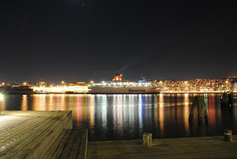 Keywords: gothenburg sweden night evening lights lighting buildings skyline urban city cities ship cruise liner bay harbor water reflections pier dock outdoor