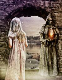 Keywords: gothic fantasy dark girl magic mystery portal winter portal statue monk statue skull female epic legend dark dream dream mystic mystic dream fantasy tale
