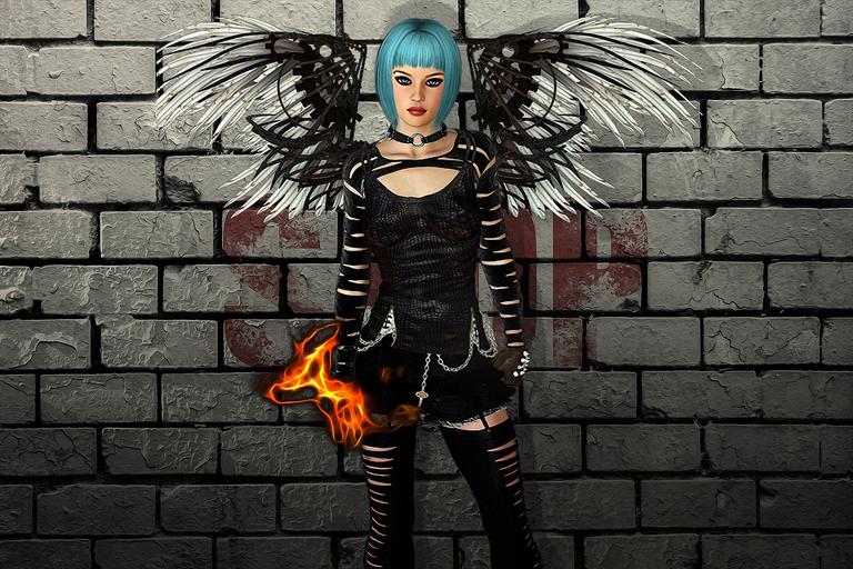 Keywords: gothic fantasy dark gothic girl female fantasy girl gothic angel fire wings model render manga manga style wall stop graffiti street