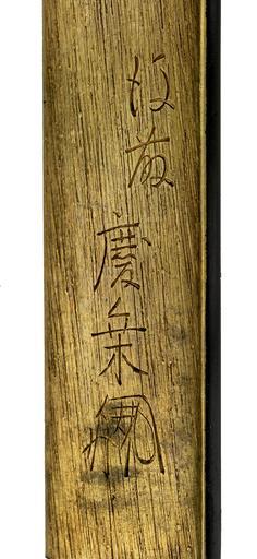 | Keywords: Gotô Keijô - Kozuka of a Bridge, Water-wheel and Castle Wall - Walters 51784 - Mark A.jpg This kozuka depicts a waterwheel in a river next to a castle wall On the right the castle fortifications jut into the river A bridge is at the left The reverse side of the kozuka is made of gold between 1651 1692 Edo shakudo gold cm 9 6 l accession number 51 784 39541 Henry Walters Baltimore date and mode of acquisition unknown Walters Art Museum Henry Walters Acquired by Henry Walters signature text place of origin Kyoto Japan Walters Art Museum license Kozuka in the Walters Art Museum Gotô Keijô Media contributed by the Walters Art Museum needs category review |