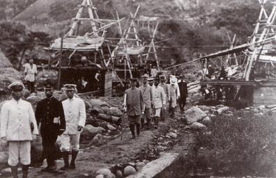 | Keywords: Goto Shimpei visiting Amarube bridge construction site.jpg en en Gotō Shinpei 4th person from left was visiting the construction site of Amarube viaduct ja 後藤新平(左から4番目)が余部橋梁建設現場を視察している様子 scanned from p 15 of Amarube bridge / 香美町発行 余部鉄橋 15ページよりスキャン author 1910-09- The photo was taken in 1910 therefore under old copyright law of Japan the copyright of the photo had already expired PD-Japan-oldphoto Black and white group photographs of men Photographs of Gotō Shinpei Amarube railway bridge |