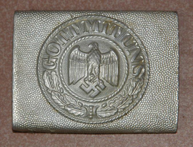 Keywords: GOTT MIT UNS Koppel.JPG en German military belt-buckle of WW2 with old Prussian GOTT MIT UNS slogan de Koppelschloss aus dem 2 WK Aus Aluminium geprägt / gebogen selbst fotografiert own work User StromBer Nazi symbol Military uniforms of World War II World War II insignia of Germany Military insignia of Germany Reichsadler of the Third Reich Uniform belts Gott Mit Uns belt buckles Nazi Swastikas |