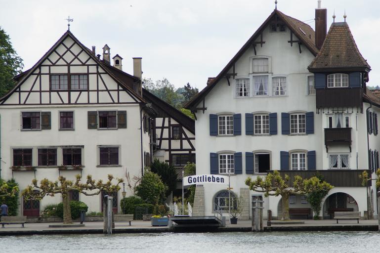 Keywords: gottlieben lake constance switzerland bank water waters homes waterfront near shore on the water at the lake