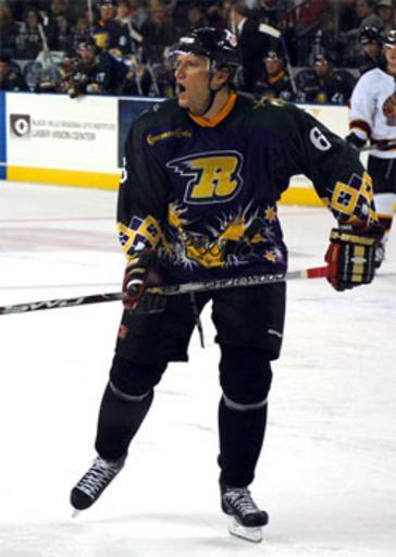 Keywords: Goulet Wiki sm.jpg en Rapid City Rush defenseman Jason Goulet barks at the opposition during a January 17 2009 CHL match versus the New Mexico Scorpions He is wearing a one-of-a-kind Mardi Gras sweater that was sold after the game to raise money for a local charity http //www chlforums com/viewtopic php t 6868 postdays 0 postorder asc start 120 Tim Pederson 09-01-17 PermissionOTRS 2009021610056864 Tim Pederson Jason Goulet |
