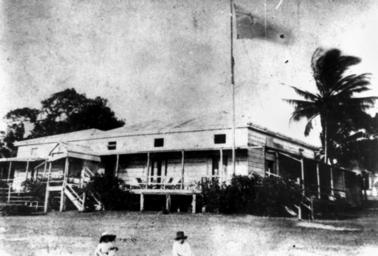 | Keywords: Government House at Somerset, Cape York, Queensland.jpeg en Government House the home of Frank Jardine in Somerset Cape York Queensland The home is a timber structure with external weatherboards and a plantation style iron roof Some deck chairs are on the verandah and a flag is flying from the flag pole in front of the house Two small children in the foreground may be Frank Jardine's uk У ядовий будинок будинок Ф енка Джа діна в Соме сеті Кейп-Йо к Квінсленд Будинок з де евини з зовнішніми віконницями та залізним дахом у плантаційному стилі Декілька шезлонгів на ве анді та п апо на флагштоку пе ед будинком Двоє маленьких на пе едньому плані можуть бути дітьми Ф енка Джа діна http //trove nla gov au/work/36928954 versionId 47944935 John Oxley Library State Library of Queensland Unidentified end of the 19th century PD-Australia StateLibQld-License Somerset Queensland Government buildings in Australia Campsites in Australia Black and white photographs |