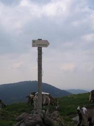Keywords: GR400coldelegal.jpeg fr Panneau de randonné aux abord du GR400 own Cabine15 2009-05-02 Col de Légal Mountains of Cantal Hiking and footpath signs in Auvergne GR 400 Goats in Cantal