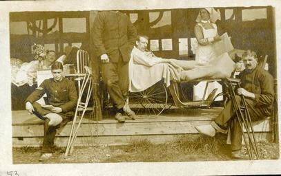 | Keywords: 1910s injured soldiers injuredsoldiers nurses world war i worldwari Patients with crutches and wheelchairs sit outside a ward at the CRCS Cliveden hospital. Patients with crutches and wheelchairs sit outside a ward at the CRCS Cliveden hospital. |
