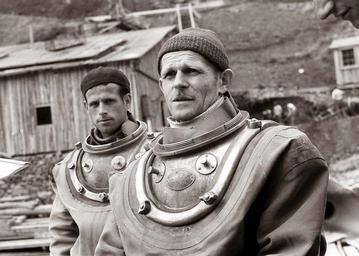 Keywords: Gradbišče hidroelektrarne Ožbalt 1958, potapljača.jpg Gradbišče hidroelektrarne Ožbalt potapljača Divers Leon Nalaslovski right and Anton Hajdinjak at the Ožbalt hydroelectric power plant construction site 107938 1958-05-07 creator Jože Gal PD-Slovenia 1958 in Slovenia Historical black and white photographs of Slovenia Construction of buildings in Slovenia Ožbalt Hydroelectric Power Plant Divers from Slovenia Standard diving dress Photographs by Jože Gal