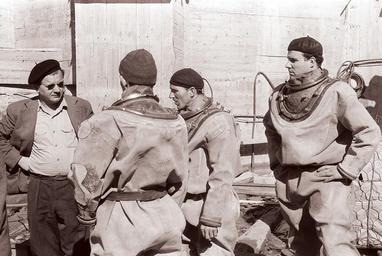 Keywords: Gradbišče hidroelektrarne Ožbalt 1960 (4).jpg Gradbišče hidroelektrarne Ožbalt Engineer Lojzeta Peštaja left with divers at the Ožbalt hydroelectric power plant construction site 271912 1960-05-21 creator Jože Gal PD-Slovenia 1960 in Slovenia Historical black and white photographs of Slovenia Ožbalt Hydroelectric Power Plant Construction of buildings in Slovenia Divers from Slovenia Standard diving dress Photographs by Jože Gal