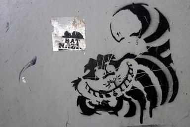 Keywords: graffiti cat cheshire cat image artwork drawing animal artists black grey