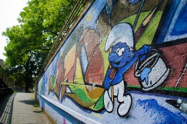 Keywords: graffiti facade hauswand art wall sprayer street art smurf graffitti spray trier