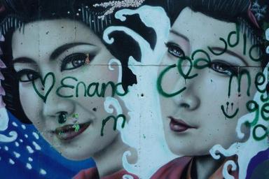 Keywords: graffiti geisha painting mural wall street art deterioration spoiled urban women colors