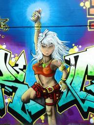 Keywords: graffiti sprayerin girl musician color colorful decorative spray art creativity murals rebellion communication