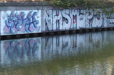 Keywords: graffiti water mirroring wall berlin heckmann shore landwehrkanal