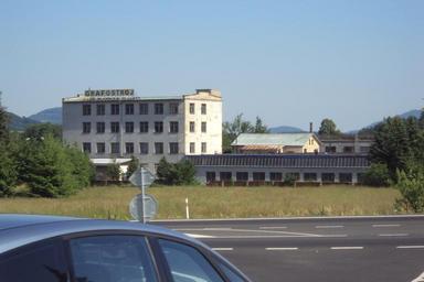 Keywords: Grafostroj Cvikov.jpg cs Továrna Grafostroj sídlo v ulici Tovární 417 Cvikov II foceno od autobusové zastávky na Pivovarské ulici own Zákupák 2012-06-16 Tovární Cvikov Factories in Cvikov Pivovarská Cvikov
