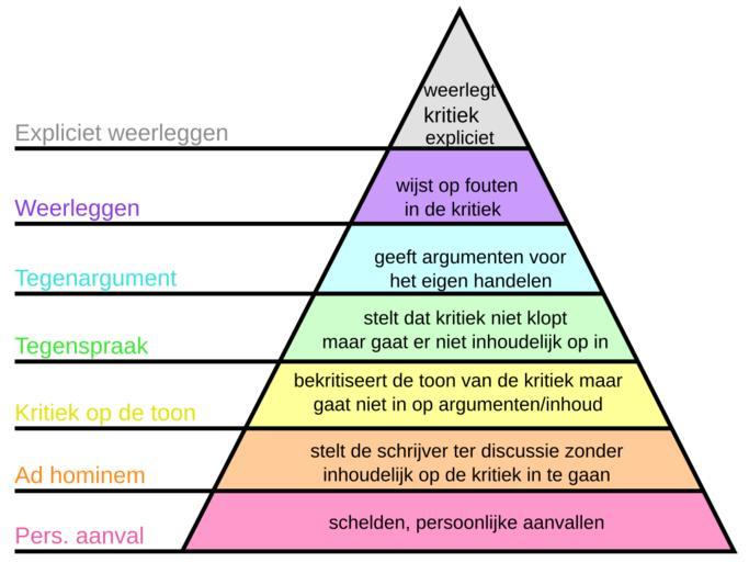 Keywords: Graham's Hierarchy of Disagreement2 NL.svg A triangular graphic representing a hierarchy of disagreement from clear refutation to mere vituperation based on the essay http //www paulgraham com/disagree html How to Disagree by Paul Graham Graham's_Hierarchy_of_Disagreement svg 2010-03-16 10 17 UTC Graham's_Hierarchy_of_Disagreement svg Rocket000 derivative work Woudloper <span class signature-talk >talk</span> translated into Dutch Woudloper Graham's_Hierarchy_of_Disagreement svg original upload log This image is a derivative work of the following images File Graham's_Hierarchy_of_Disagreement svg licensed with PD-user 2009-10-17T23 15 45Z DoriSmith 707x530 2518 Bytes <nowiki>Clean up typos in text </nowiki> 2009-03-04T06 05 43Z Arugula999 707x530 2638 Bytes <nowiki>no need for an +2kB inkscape edit just fix the typo in notepad this way it keeps it nice and clean for translations </nowiki> 2008-11-17T19 04 45Z Mfield 707x530 5202 Bytes <nowiki>Ad Hominem correct arguement -> argument</nowiki> 2008-09-05T08 23 47Z Rocket000 707x530 2594 Bytes <nowiki>different font less whitespace</nowiki> 2008-09-05T07 49 29Z Rocket000 730x530 2554 Bytes <nowiki> A triangular graphic representing a hierarchy of disagreement from clear refutation to mere vituperation hand-coded by uploader; based on Image Graham's Hierarchy of Disagreement jpg</nowiki> Uploaded with derivativeFX Argument maps Hierarchy Triangular diagrams Graham's Hierarchy of Disagreement |