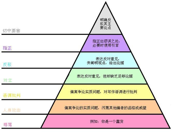 | Keywords: Graham's Hierarchy of Disagreement-zh.png zh-cn 争论的解决 2012-04-26 wikimedia commons Graham's_Hierarchy_of_Disagreement svg Rocket000åŽŸä½ ï¼ŒKuailong汉化 DrTrigonBot <span class signature-talk >talk</span> FileContentsByBot/ColorRegions FileContentsByBot/ColorRegions 0 940 0 020 PMS 11-1001 TPX White Alyssum Pantone 241 238 237 61 304 242 241 241 0 647 0 0 700 529 1 270 1 310 221 FileContentsByBot/ColorAverage 0 044 PMS 11-0603 TPX Pastel Parchment Pantone 231 223 217 0 065 230 223 218 0 132 0 716 FileContentsByBot/Properties - 705 534 PNG 1 image/png RGB 21626 cc-zero Argument maps Triangular diagrams hierarchy Uploaded with UploadWizard Categorized by DrTrigonBot Graham's Hierarchy of Disagreement |