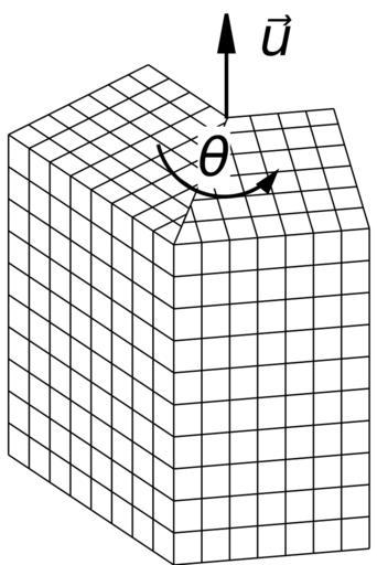 | Keywords: Grain boundary tilt.svg en Tilt grain boundary 'u' is common metallographic axis for both grains Theta is rotation angle ru Разо иентация к исталлов с об азованием г аницы наклона u - ось азо иенти овки Тэта - угол азо иенти овки own MadCAD 2010-03-12 Г аницы зе ен и свойства металлов Кайбышев О А Валиев Р З еталлу гия 1987 214 с Grain boundary |