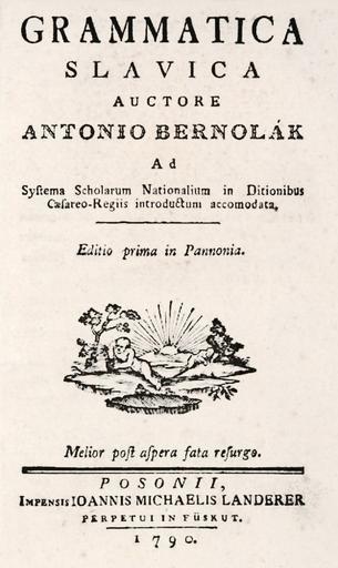 Keywords: Grammatica Slavica retuschiert.jpg ru Титульная ст аница книги Антона Бе нолака Grammatica Slavica изданной в 1790 году sk Titulná strana diela Grammatica Slavica od Antona Bernoláka 1790 de Titelseite der Grammatica Slavica von Antona Bernoláka 1790 1790 Pauliny E Dejiny spisovnej slovenčiny Bratislava Slovenské pedagogické nakladateľstvo 1983 S 166 Anton Bernolák 01 10 1762 - 15 01 1813 derivative work Lämpel <gallery>Grammatica Slavica 1790 png Original</gallery> Farbe Helligkeit und Kontrast optimiert geschärft und Artefakte vermindert Lämpel Grammatica Slavica 1790 png PD-old-100 Uploaded with UploadWizard Slovak language literature |