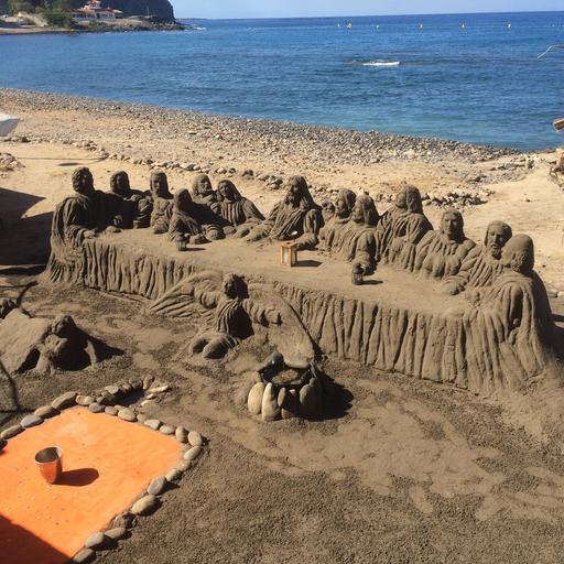 Keywords: gran canaria sand art religious sculpture sand sculpture beach sea holidays summer