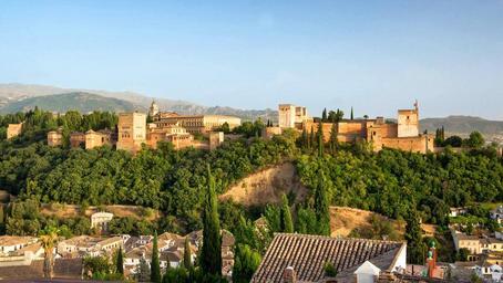 Keywords: granada spain buildings the alhambra castle fortress trees architecture landmark historic famous nature outside sky clouds