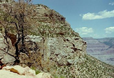 | Keywords: Grand Canyon Moran Point03.jpg Grand Canyon is a steep sided gorge formed by the Colorado River in northern Arizona United States View from Moran Point on the East Rim of Grand Canyon <br>Close-up of Moran Point--The viewpoint Grandview Point is 3-mi west South Rim east terminus region and sits above the slope-forming members Hermit Shale then Supai Group redbeds with white layers <br>The View of Grandview Point can delineate the geology of the 4-units above the Supai Group 'redbeds' The top 4 units of the the South Rim and North Rim are the Permian units and some interfaces are not visible close-up but at the 3-mi distance of Grandview Point the 4 units are 4-- white -Kaibab Limestone cliff 3-- dark slope-former -Toroweap Formation 2-- very white/buff -Coconino Sandstone cliff 1-- very light slope-former -Hermit Shale Also the top unit of Supai Group 'redbeds' below is a cliff-former the Esplanade Sandstone Thicknesses of Kaibab and Coconino units are a maximum of about 300-350 ft Roadside Geology of Arizona so the Esplanade Sandstone cliff-former unit below Grandview Point may be 100-150+ ft maximum At the western end of the Grand Canyon east of Lava Falls and Lava Flls Rapid the south side of the Colorado River contains an erosion resistant platform comprised of Esplanade Sandstone and called The Esplanade-- see Category The Esplanade Grand Canyon Grand Canyon ist eine vom Colorado River geformte tiefe Schlucht im nördlichen Arizona Vereinigte Staaten Im Bild Blick vom Moran Point am East Rim des Grand Canyon own 1998-05-22 Nikater Own work all rights released Public domain Grand Canyon Grand Canyon East Rim Moran Point Kaibab Limestone in Arizona Kaibab Limestone bedding Toroweap Formation Toroweap Formation bedding Coconino Sandstone in Arizona Coconino Sandstone cliffs Hermit Shale Hermit Formation slopes Supai Group Supai Group 'redbeds' Esplanade Sandstone Esplanade Sandstone cliffs Wescogame Formation Wescogame Formation slopes Manakacha Formation Manakacha Formation bedding Watahomigi Formation Watahomigi Formation slopes Redwall Limestone cliffs |